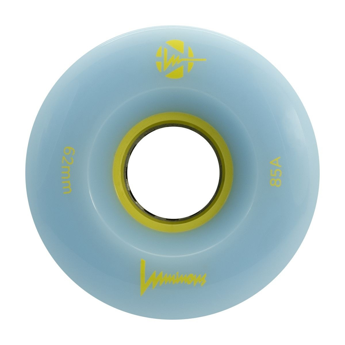 Luminous Quad Wheels in 62mm/85A with a dual-color light blue and yellow glow. Sold in a pack of 4, these wheels come with a magnetic spacer for 8mm axles, offering high visibility and style.