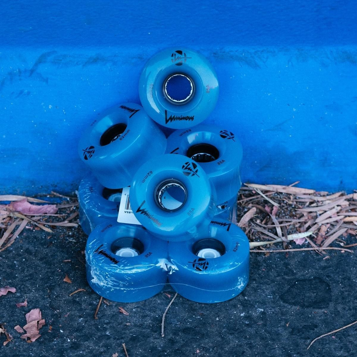 Luminous Quad Wheels in Blue glow, 85A hardness, sold in packs of 4. These wheels provide a vibrant blue glow for enhanced visibility and style, perfect for skaters who want to shine bright.